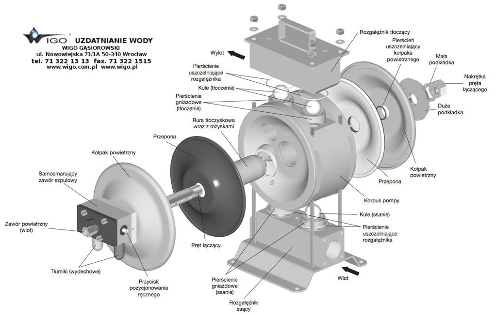 ▪ Tylko ‘jedna nakrętka’ umożliwiająca dostęp do membran w pompie zamontowanej w układzie.