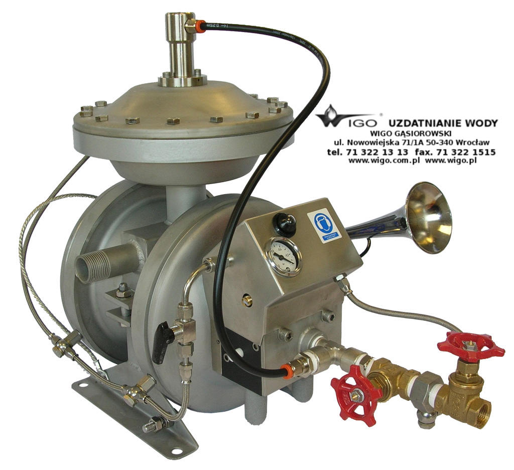 Przez zastosowanie dwóch dodatkowych jednakowych przepon, po jednej za każdą przeponą roboczą, utworzono dodatkową komorę, która w wypadku przerwania przepony: