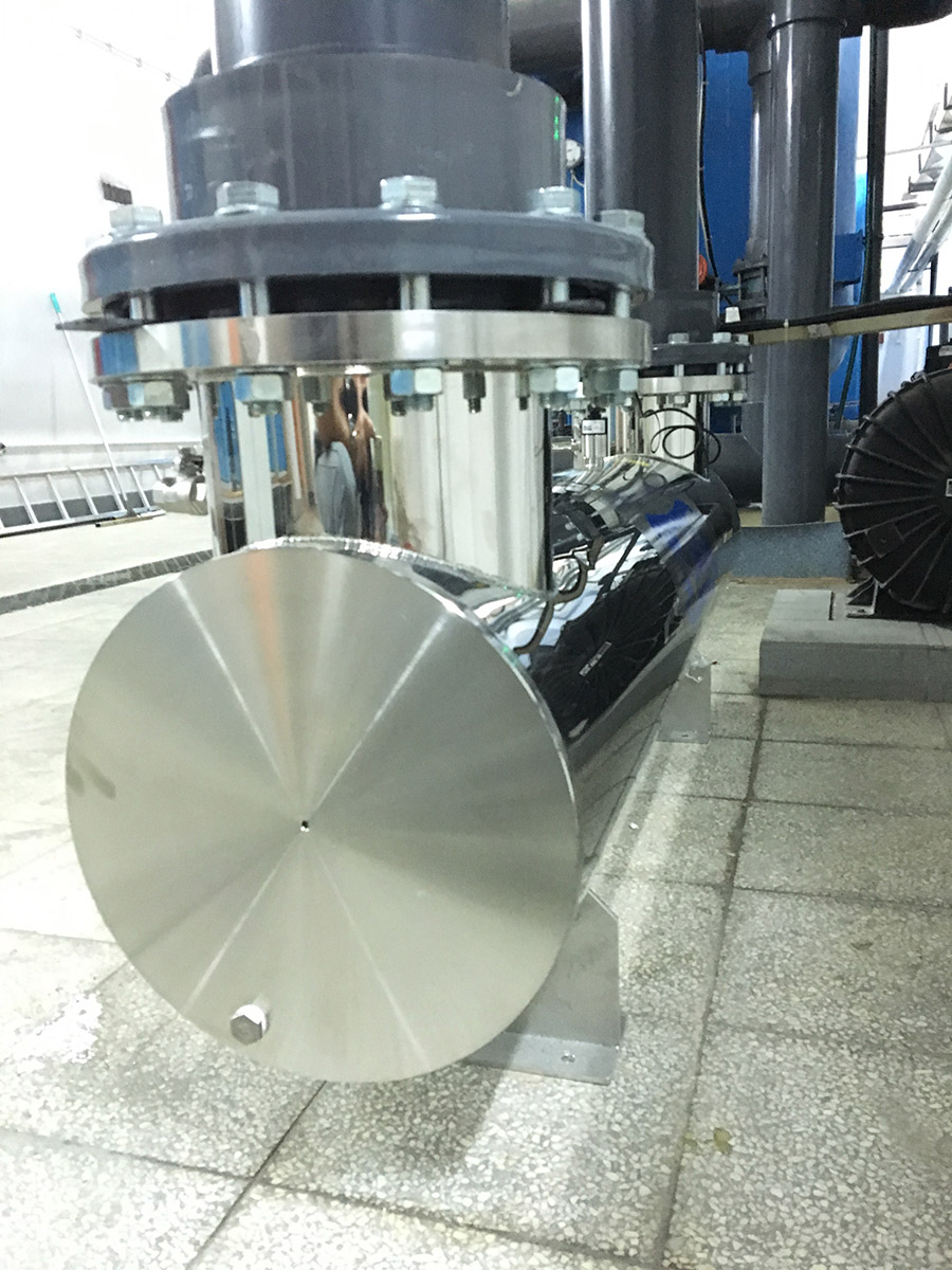 Zainstalowana lampa w technologii basenowej AMX-6B, 280 m3/h przy dawce 600 J m/2